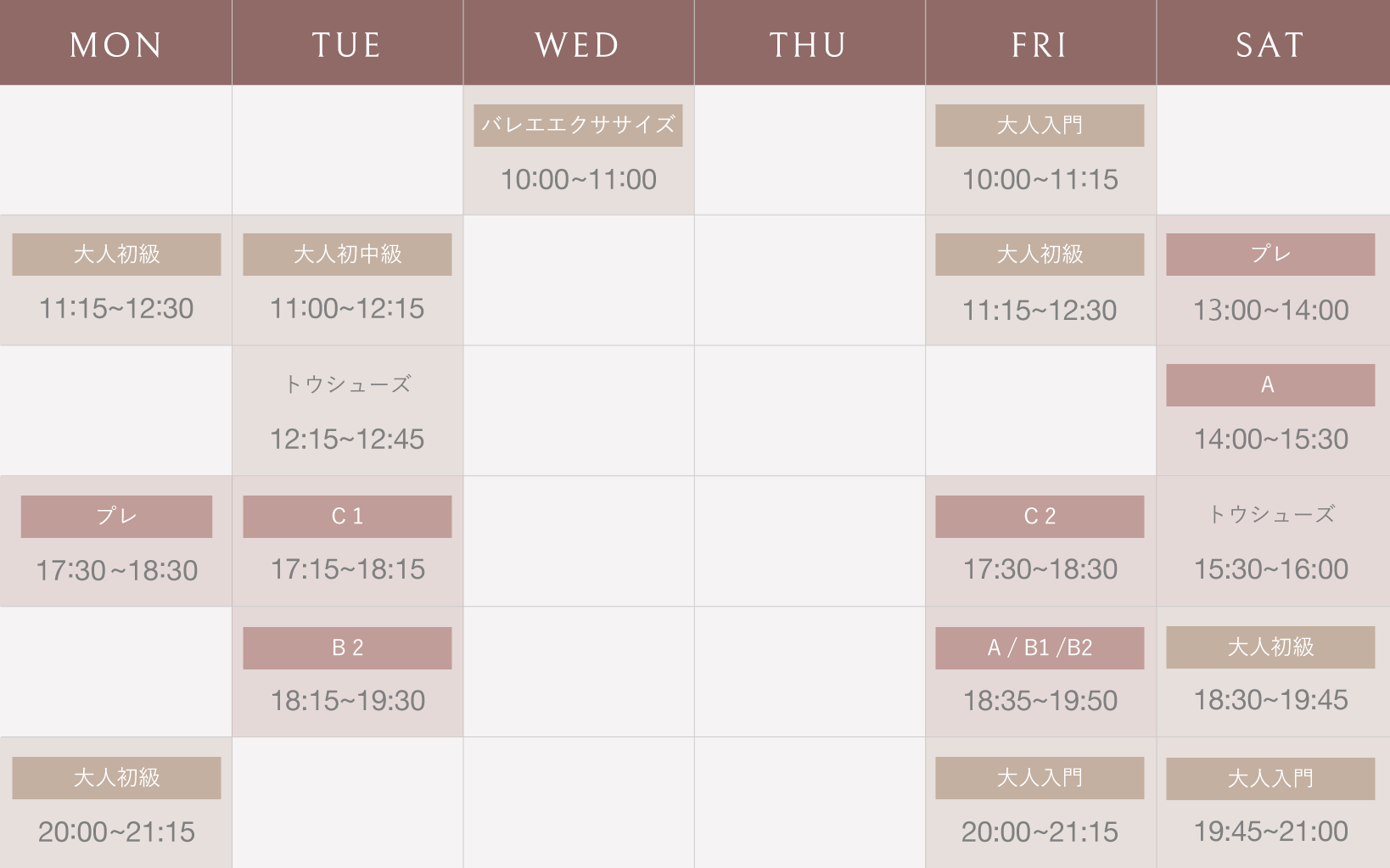 水曜日エクササイズクラス1回:¥2,0005回分チケット:¥10,000